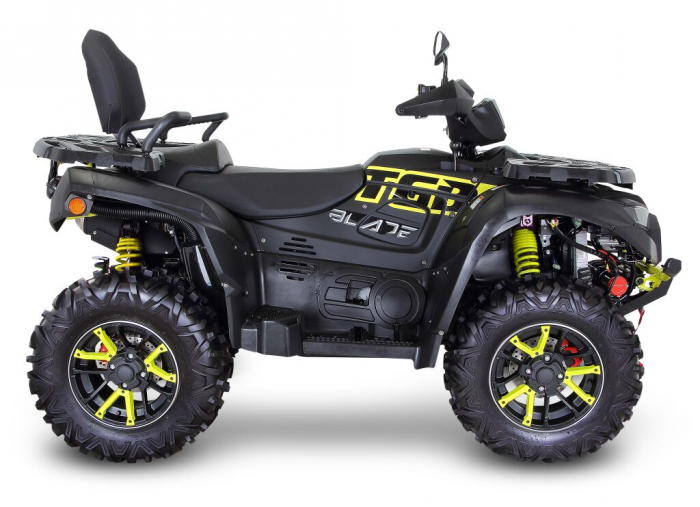 Užitková / pracovně-rekreační čtyřkolka s Full-LED matrix světlomety, zadním EVO LED osvětlením s dynamickým blinkrem, E5 (L7e) homologace, barevný TFT displej s bluetooth (BT) připojením k telefonu, 14″ černé XTC ALU disky s barevnými paprsky, nitrogenové tlumiče EVO, značkové pneumatiky, prodloužený podvozek, třírežimový posilovač řízení EPS, kapalinou chlazený motor V-Twin 997 cm3 EFI, vylepšená automatická L/H/N/R/P převodovka s japonskými komponenty, brzdění motorem, pohon 2×4 / 4×4 se dvěma uzamykatelnými diferenciály, 4x hydraulická kotoučová brzda, nezávislá dvojitá A-ramena vpředu i vzadu, přední ochranný rám, zlepšený přední nájezdový úhel, vyšší světlá výška vzadu, tažné zařízení, el. naviják 3000 lbs, kompozitní nosiče zavazadel vpředu a vzadu, chrániče rukou, samostatné sedadlo spolujezdce s opěrkou zad a madly, odnímatelná mřížka chladiče, 12V zásuvka